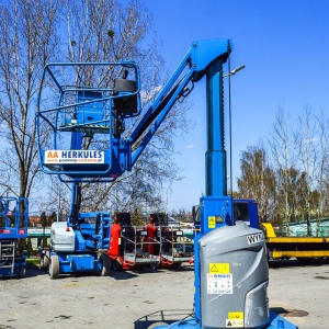 Ten podnośnik masztowy świetnie radzi sobie nawet w wąskich przejściach, a co ważne – można nim przejechać przez drzwi, nawet z operatorem na podeście. Marka Genie należy do jednych z najchętniej wybieranych na całym świecie – sprawdź. Poniżej dodajemy zdjęcia z podnośnikiem przy pracy!
